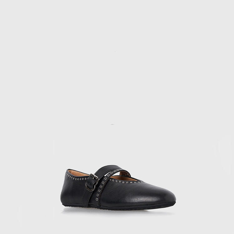 키사 스웨이드 스터드 플랫슈즈 가죽 블랙 KISSA P507002